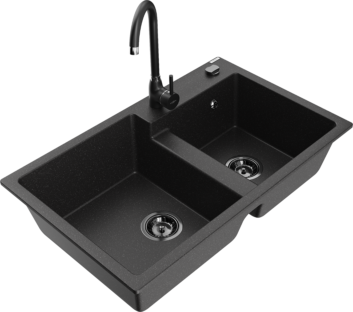 Mexen Tomas granieten spoelbak met 2 compartimenten en Telma keukenkraan, zwart/zilver metallic - 6516-73-670200-70-B