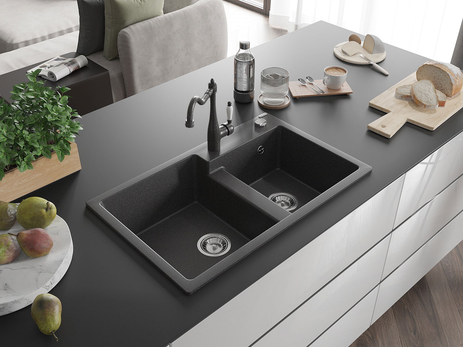 De gootsteen is gemaakt van hoogwaardig graniet. Het vormt een elegante en vooral praktische aanvulling op elke keuken, ongeacht de stijl. De hoge kwaliteit en duurzaamheid van graniet zorgen voor jarenlang gebruik.