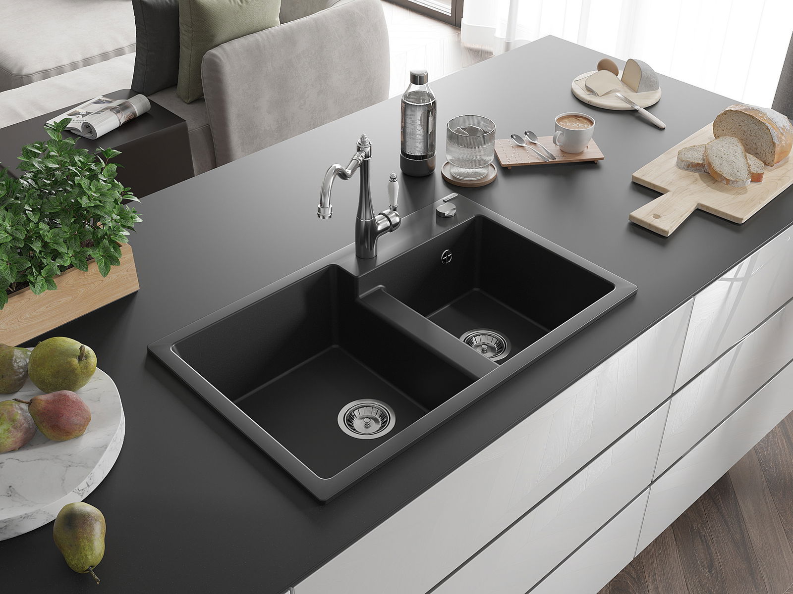 De gootsteen is gemaakt van hoogwaardig graniet. Het vormt een elegante en vooral praktische aanvulling op elke keuken, ongeacht de stijl. De hoge kwaliteit en duurzaamheid van graniet zorgen voor jarenlang gebruik.
