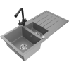 Mexen Andres granieten gootsteen 1,5-komor met afdruiprek en keukenkraan Duero, zwart - 6515-77-671600-70