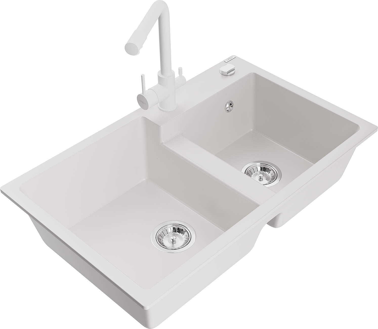 Mexen Tomas granieten spoelbak 2-kamer met keukenmengkraan Duero, wit - 6516-20-671600-20