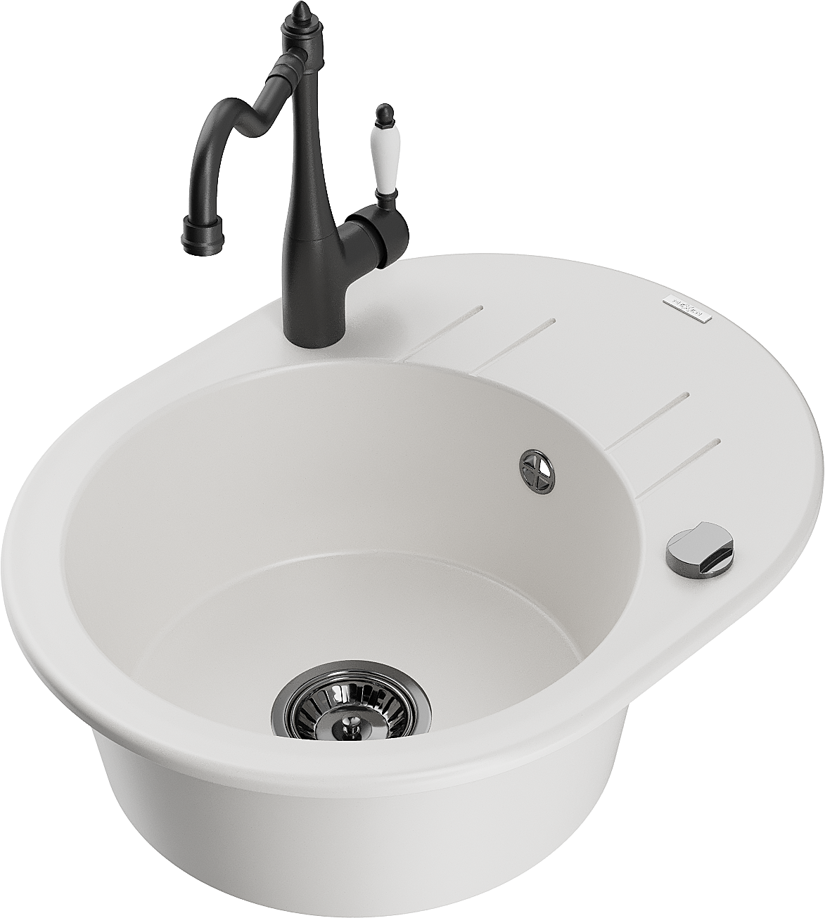 Mexen Kevin granieten gootsteen 1-komers met afdruiprek en keukenkraan Carla, wit - 6517-20-670700-70