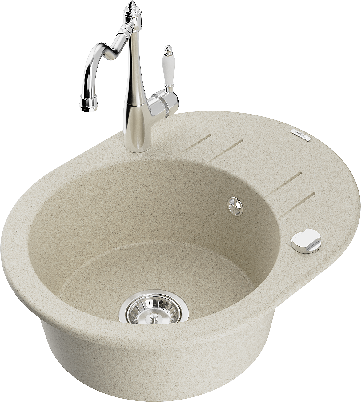 Mexen Kevin granieten spoelbak 1-compartiment met afdruiprek en keukenmengkraan Carla, beige - 6517-69-670700-00