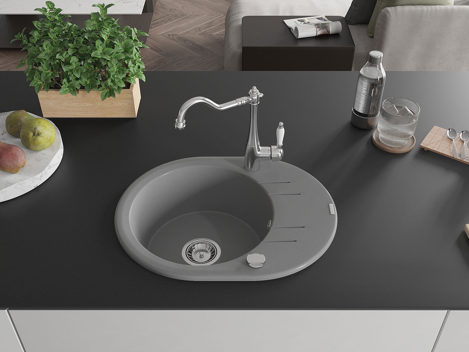 De gootsteen is gemaakt van hoogwaardig graniet. Het vormt een elegante en vooral praktische aanvulling op elke keuken, ongeacht de stijl. De hoge kwaliteit en duurzaamheid van graniet zorgen voor jarenlang gebruik.