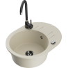 Het oppervlak van de gootsteen is bestand tegen vlekken en verkleuringen, waardoor het gemakkelijk schoon te houden is en zijn kleur behoudt gedurende een lange gebruiksperiode. Een esthetische en praktische aanvulling op elke keuken.