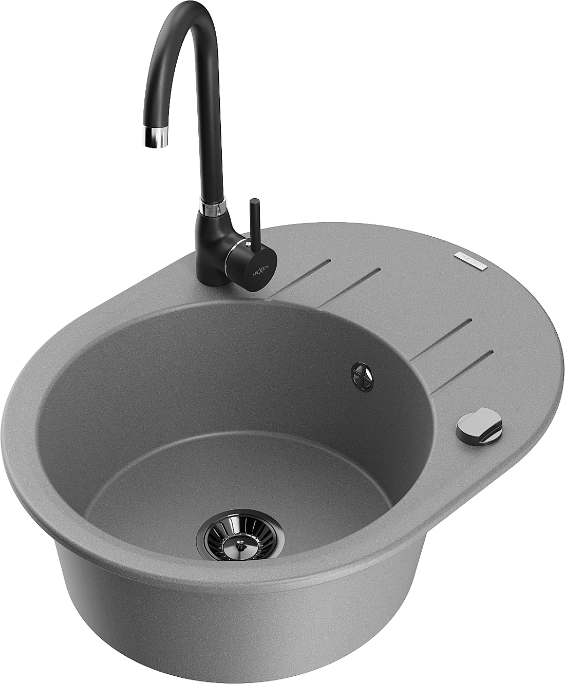 Mexen Kevin granieten gootsteen met 1 bak, afdruiprek en Telma keukenmengkraan, grijs - 6517-71-670200-70-B