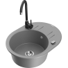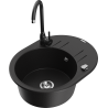 Mexen Kevin granieten spoelbak 1-komps met afdruiprek en keukenkraan Telma, zwart/zilver metallic - 6517-73-670200-70