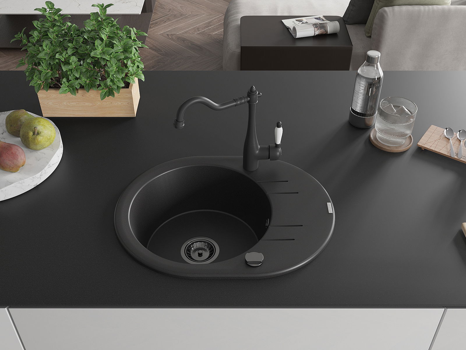 De gootsteen is gemaakt van hoogwaardig graniet. Het vormt een elegante en vooral praktische aanvulling op elke keuken, ongeacht de stijl. De hoge kwaliteit en duurzaamheid van graniet zorgen voor jarenlang gebruik.