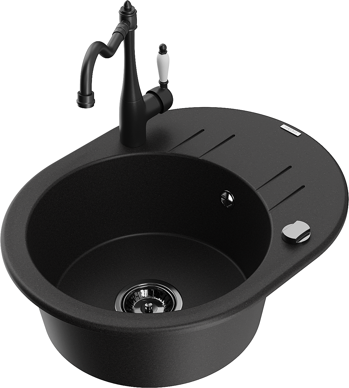 Mexen Kevin granieten gootsteen met 1 bak, afdruiprek en keukenkraan Carla, zwart - 6517-77-670700-70-B