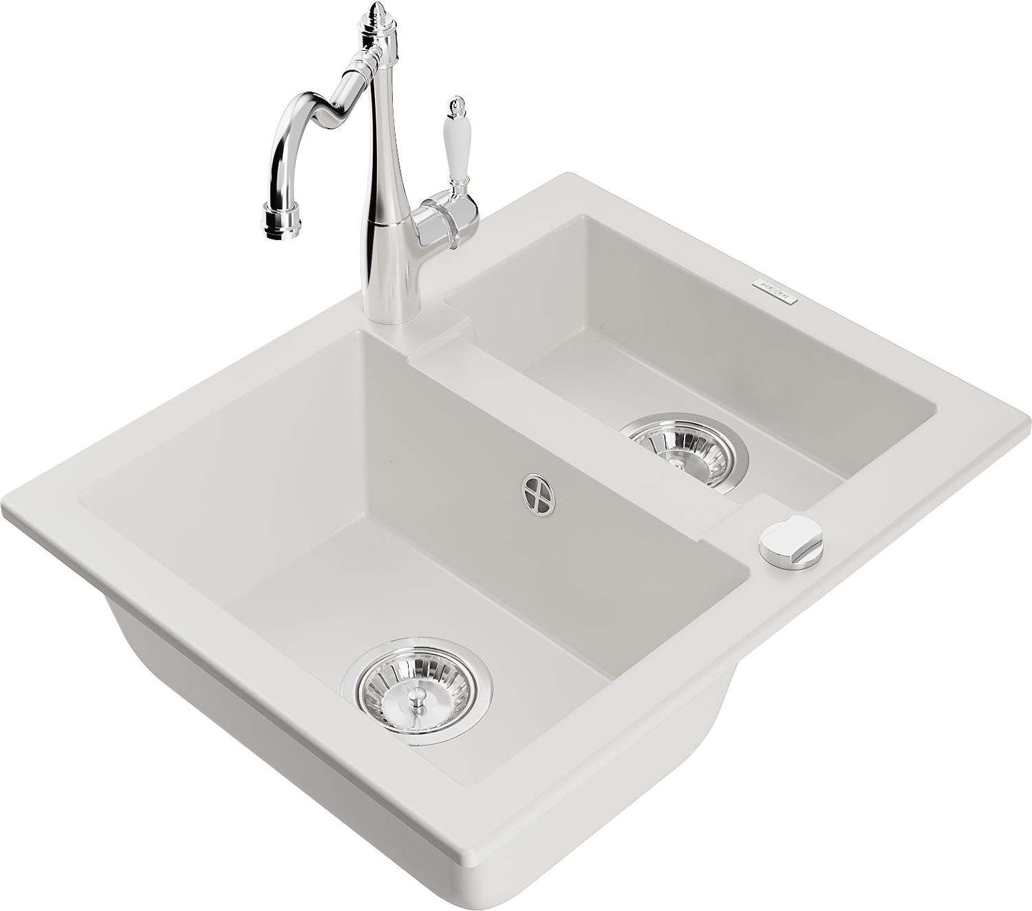 Mexen Carlos granieten spoelbak 1,5-komor met keukenkraan Carla, wit - 6518-20-670700-00