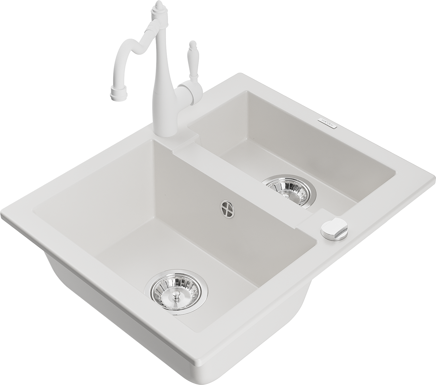 Mexen Carlos granieten spoelbak 1,5-combi met keukenmengkraan Carla, wit - 6518-20-670700-20