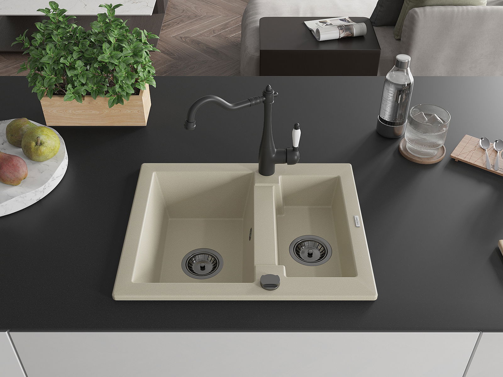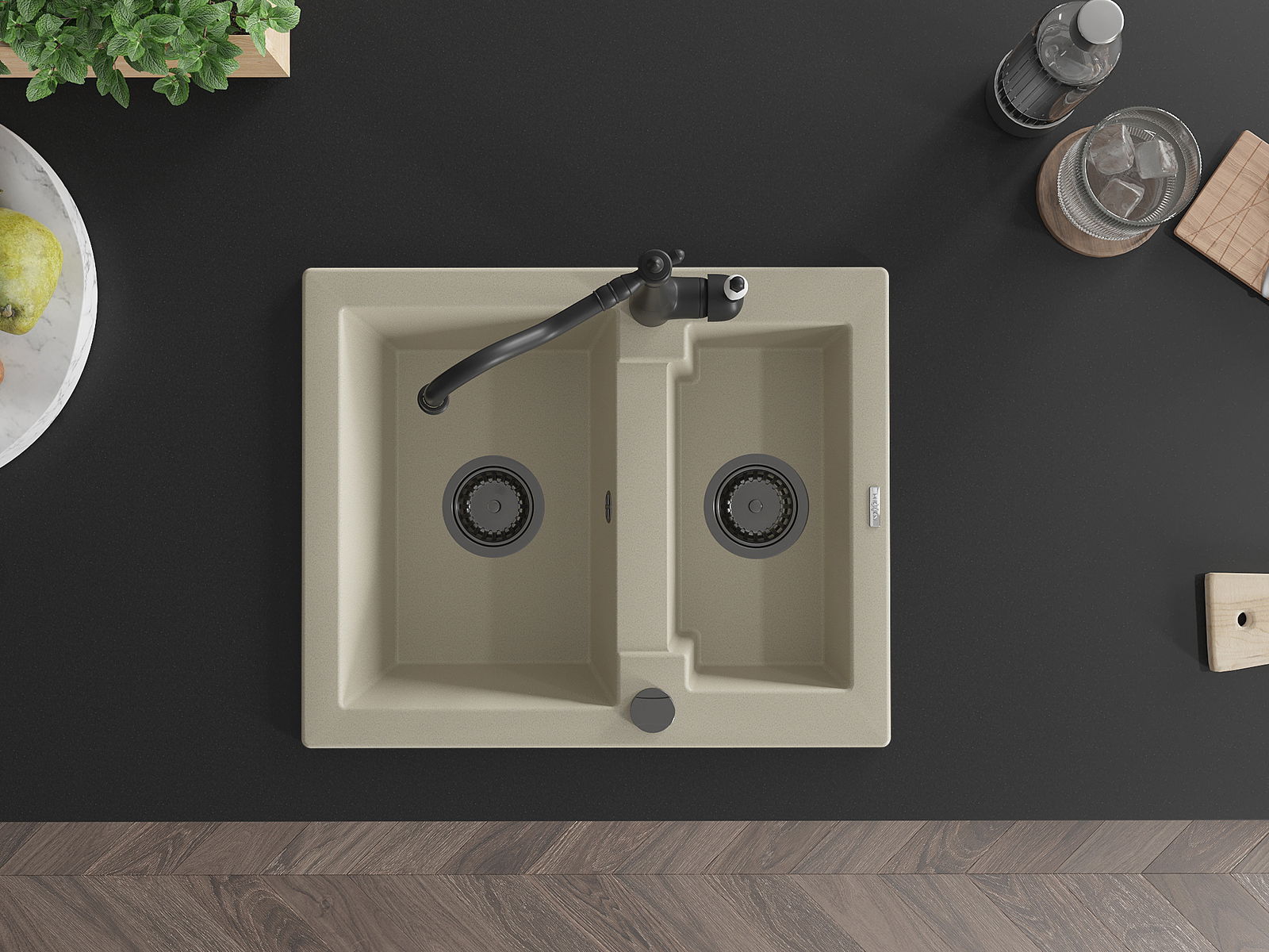 Mexen Carlos granieten gootsteen 1,5-komers met keukenmengkraan Carla, beige - 6518-69-670700-70