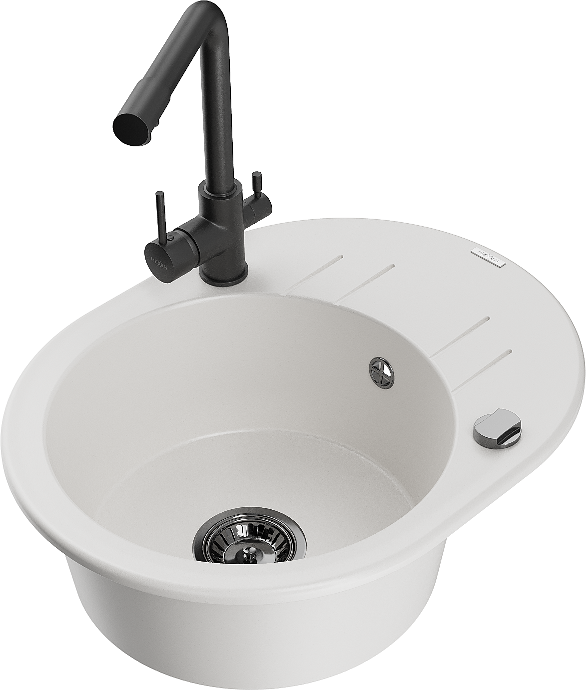 Mexen Kevin granieten spoelbak 1-kamer met afdruiprek en keukenmengkraan Duero, wit - 6517-20-671600-70