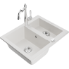 Het oppervlak van de gootsteen is bestand tegen vlekken en verkleuringen, waardoor het gemakkelijk schoon te houden is en zijn kleur behoudt gedurende een lange gebruiksperiode. Een esthetische en praktische aanvulling op elke keuken.