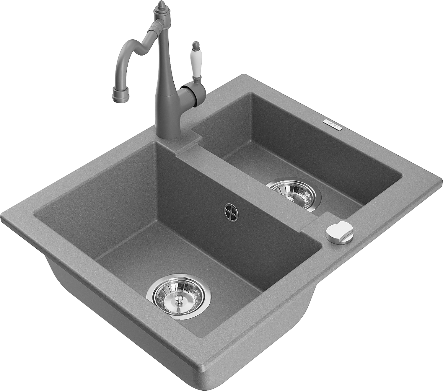 Mexen Carlos granieten gootsteen 1,5-komerig met keukenmengkraan Carla, grijs - 6518-71-670700-71