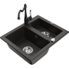 Mexen Carlos granieten gootsteen 1,5-kuip met keukenkraan Carla, zwart/zilver metallic - 6518-73-670700-70