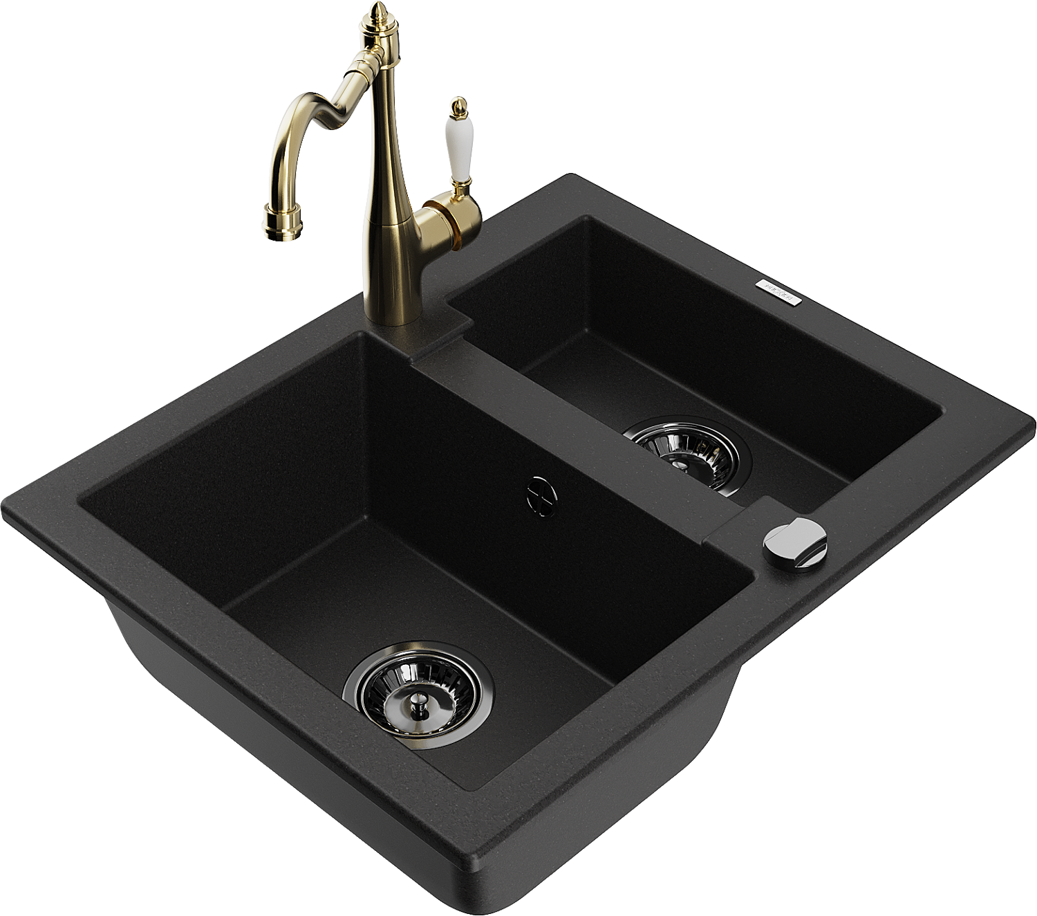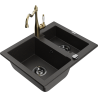 Mexen Carlos granieten spoelbak 1,5-kamer met keukenkraan Carla, zwart - 6518-77-670700-50-B