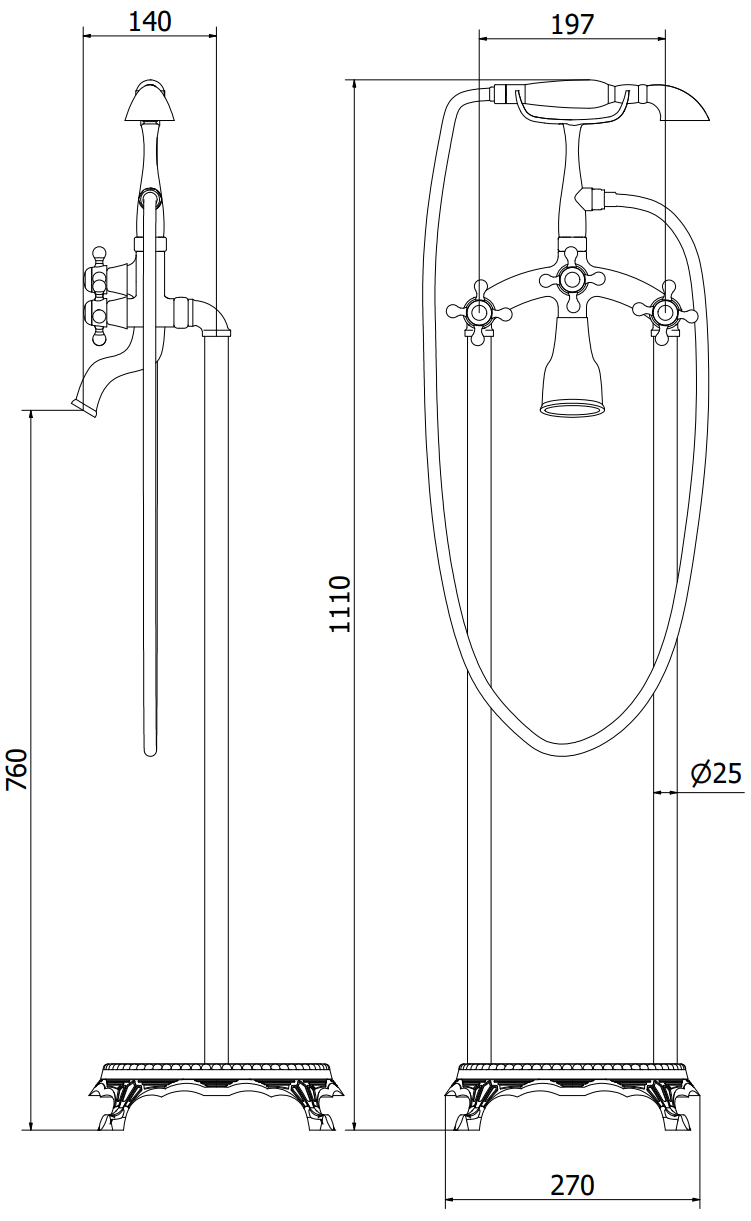 Mexen Retro vrijstaande badkraan, zwart - 75933-70