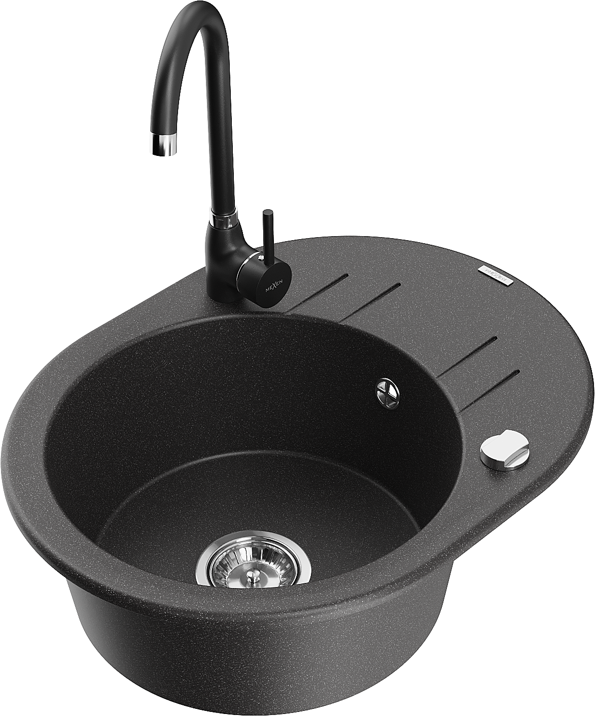 Mexen Kevin granieten spoelbak 1-komerig met afdruiprek en Telma keukenkraan, zwart gespikkeld - 6517-76-670200-70