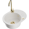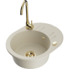 Het oppervlak van de gootsteen is bestand tegen vlekken en verkleuringen, waardoor het gemakkelijk schoon te houden is en zijn kleur behoudt gedurende een lange gebruiksperiode. Een esthetische en praktische aanvulling op elke keuken.