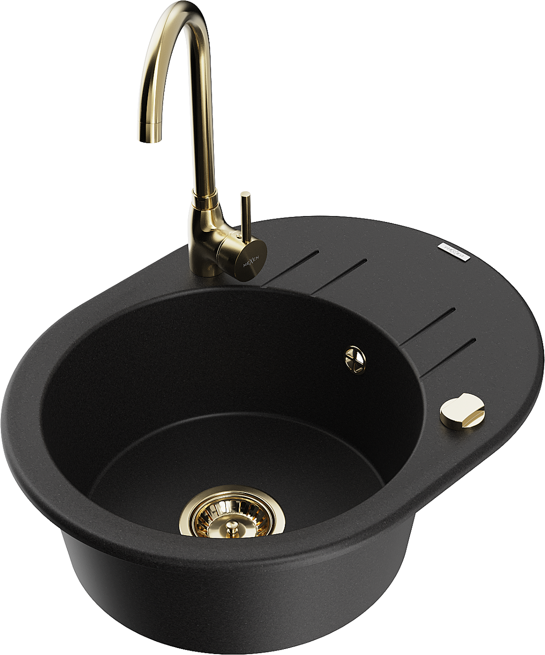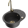 Mexen Kevin granieten spoelbak met 1 bak en afdruiprek en keukenmengkraan Telma, zwart - 6517-77-670200-50