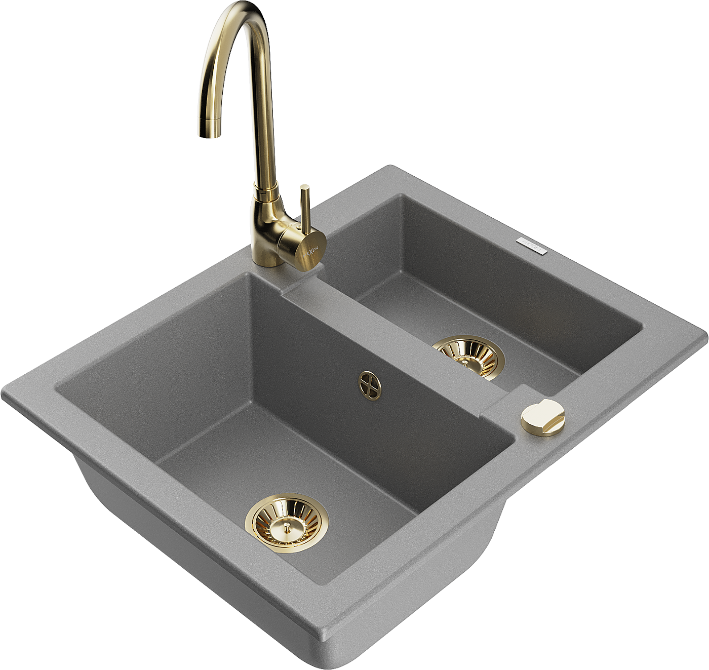 Mexen Carlos granieten spoelbak 1,5-compartiment met keukenmengkraan Telma, grijs - 6518-71-670200-50