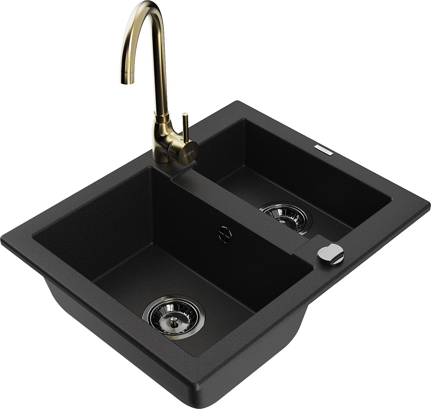 Mexen Carlos granieten gootsteen 1,5-bak met Telma keukenmengkraan, zwart - 6518-77-670200-50-B