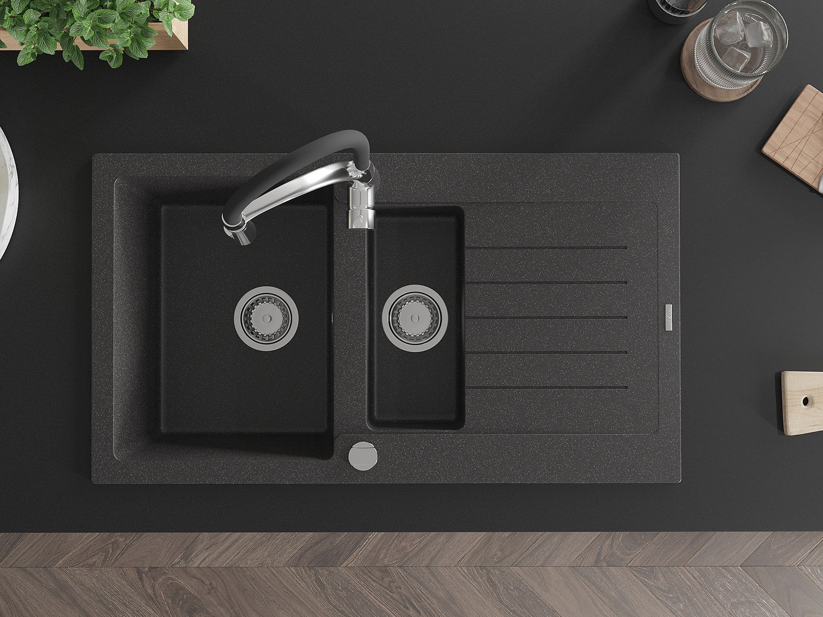 Het oppervlak van de spoelbak is zeer goed gehard en biedt een uitzonderlijke weerstand tegen mechanische beschadigingen en krassen. Het duurzame materiaal zorgt ervoor dat u jarenlang van zijn mooie uiterlijk kunt genieten.