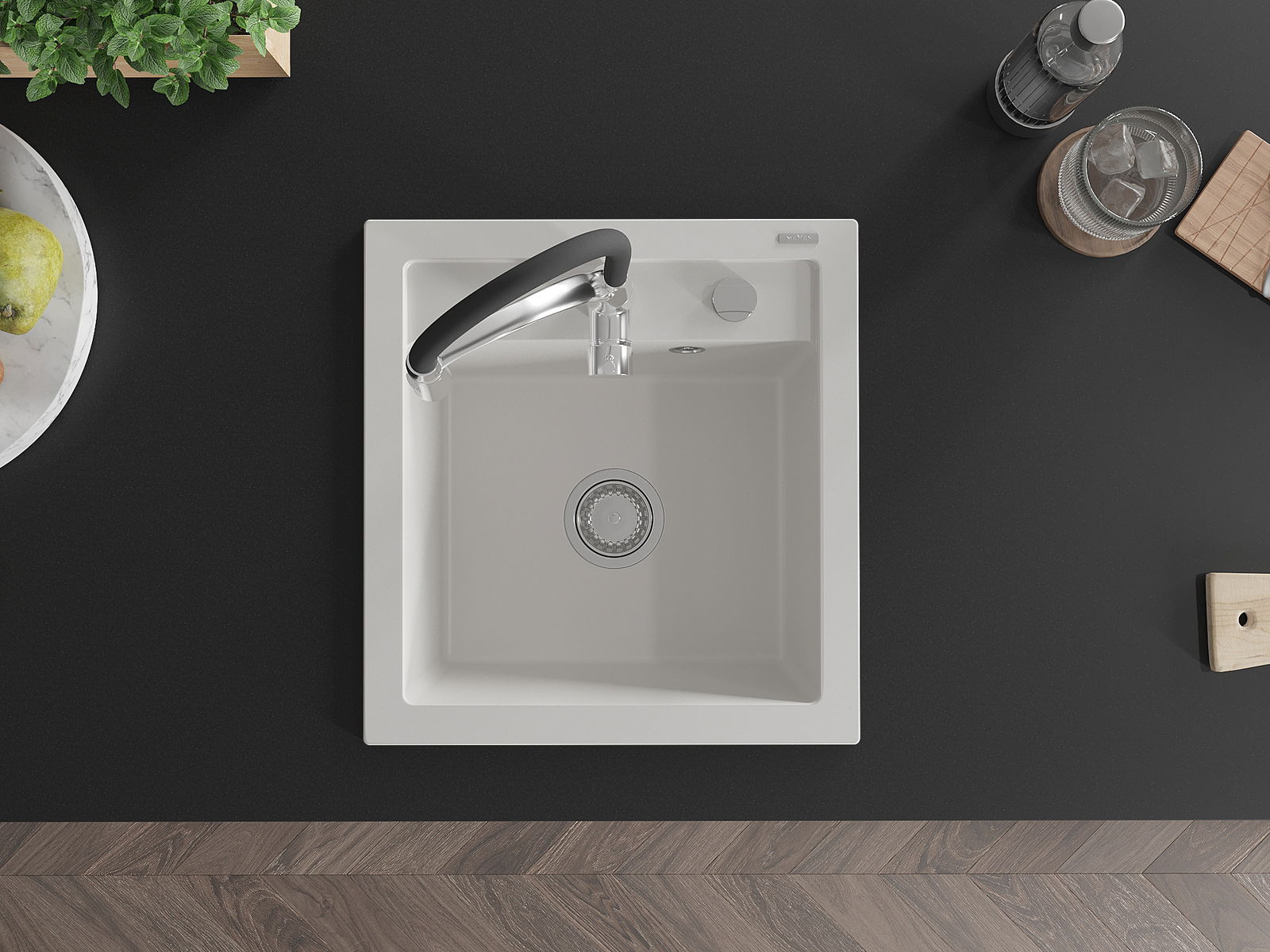 Het oppervlak van de gootsteen is zeer goed uitgehard en onderscheidt zich door uitzonderlijke weerstand tegen mechanische schade en krassen. Het duurzame materiaal zorgt ervoor dat de gootsteen er jarenlang goed uit blijft zien.