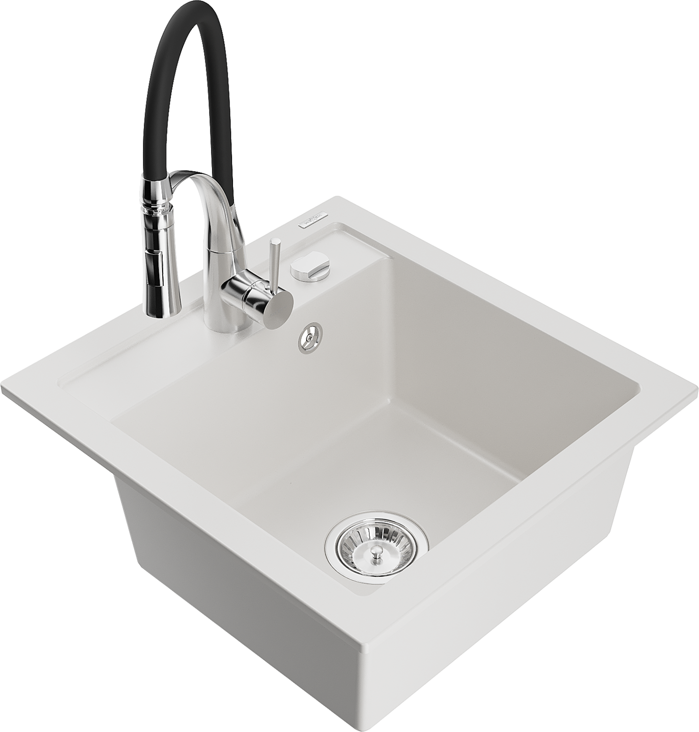 Mexen Vito granieten gootsteen 1-komors met keukenmengkraan Aster, wit - 6503-20-73450-07