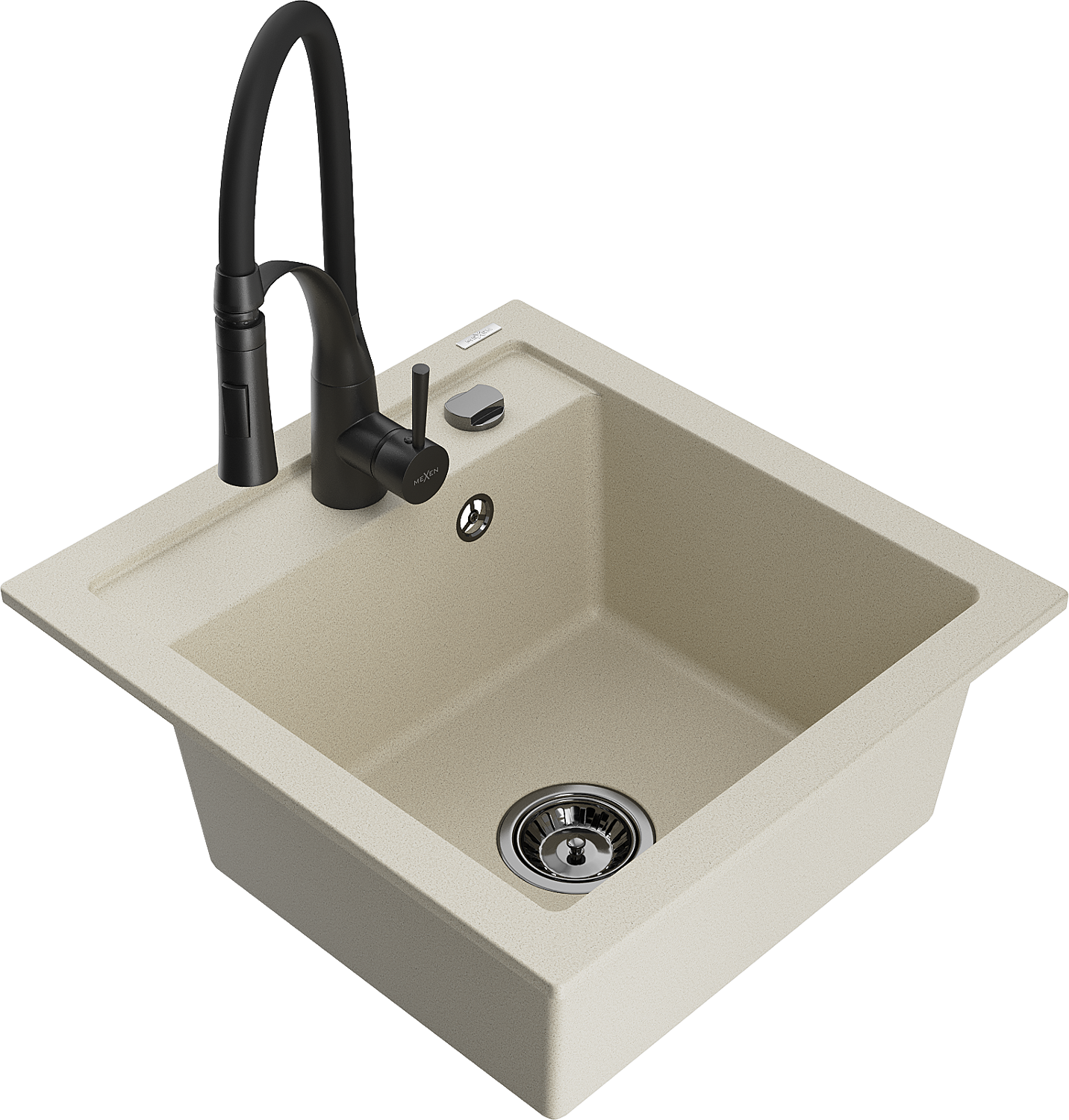 Mexen Vito granieten spoelbak met 1 kom en keukenkraan Aster, beige - 6503-69-73450-70-B