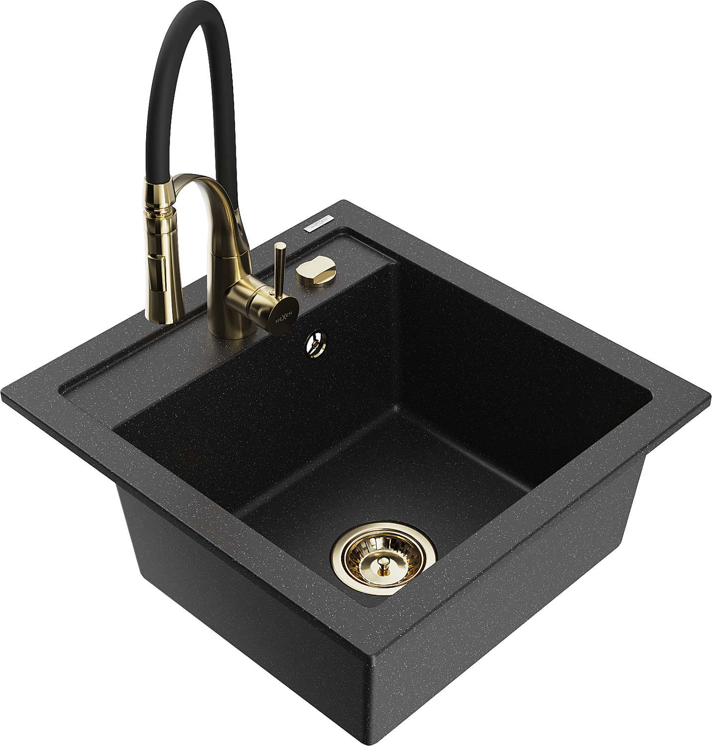 Mexen Vito granieten spoelbak met 1 bak en Aster keukenkraan, zwart/zilver metallic- 6503-73-73450-57-G