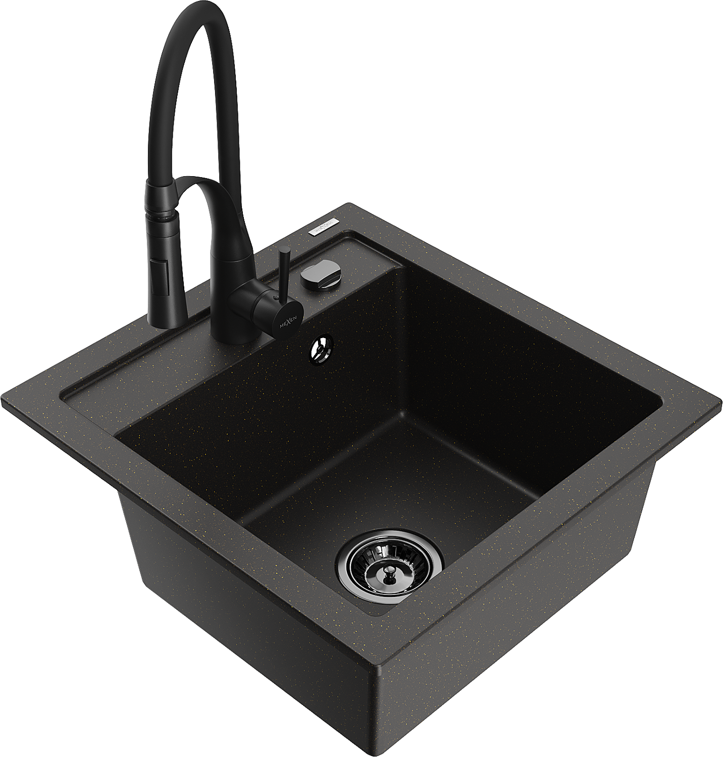 Mexen Vito granieten spoelbak 1-komor met Aster keukenmengkraan, zwart/goud metallic- 6503-75-73450-70-B