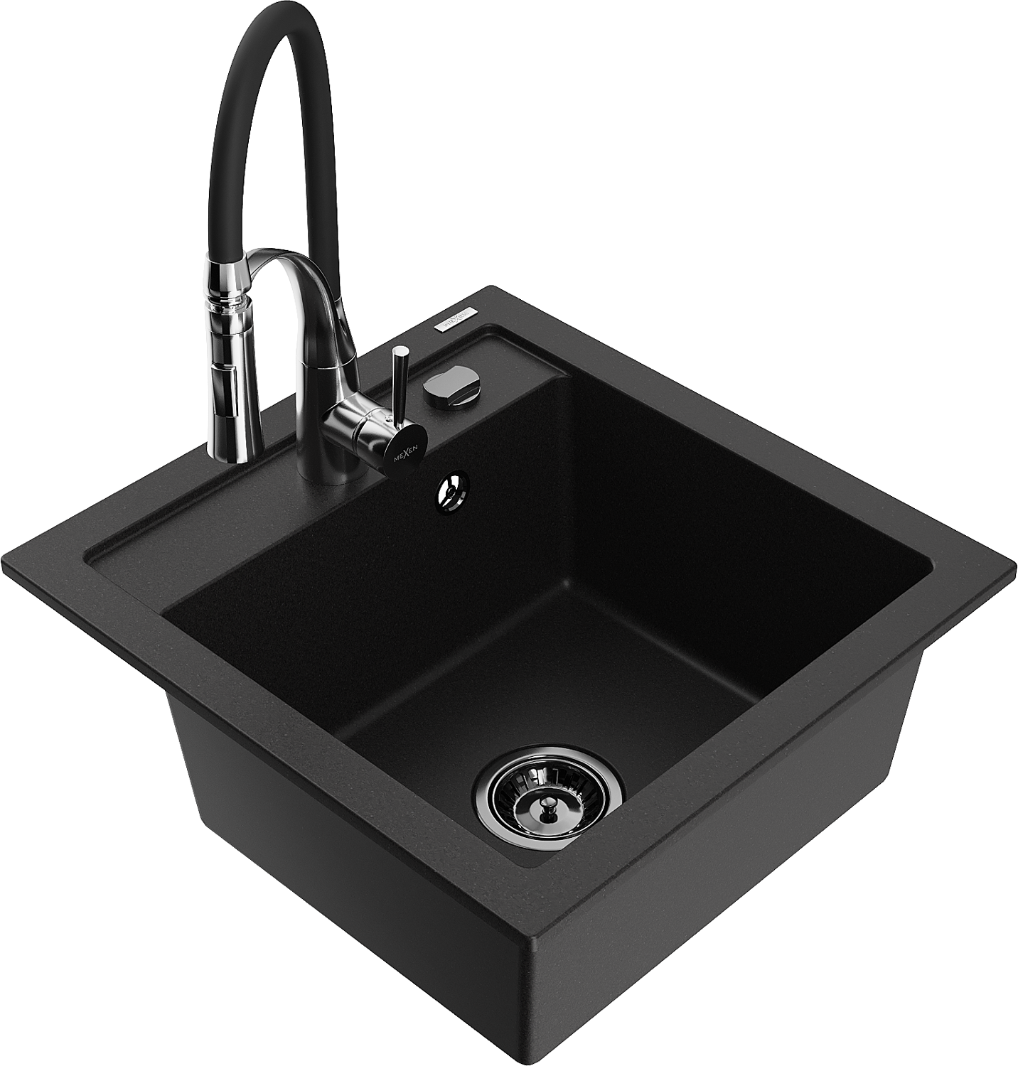 Mexen Vito granieten spoelbak 1-komorig met keukenmengkraan Aster, zwart - 6503-77-73450-07-B