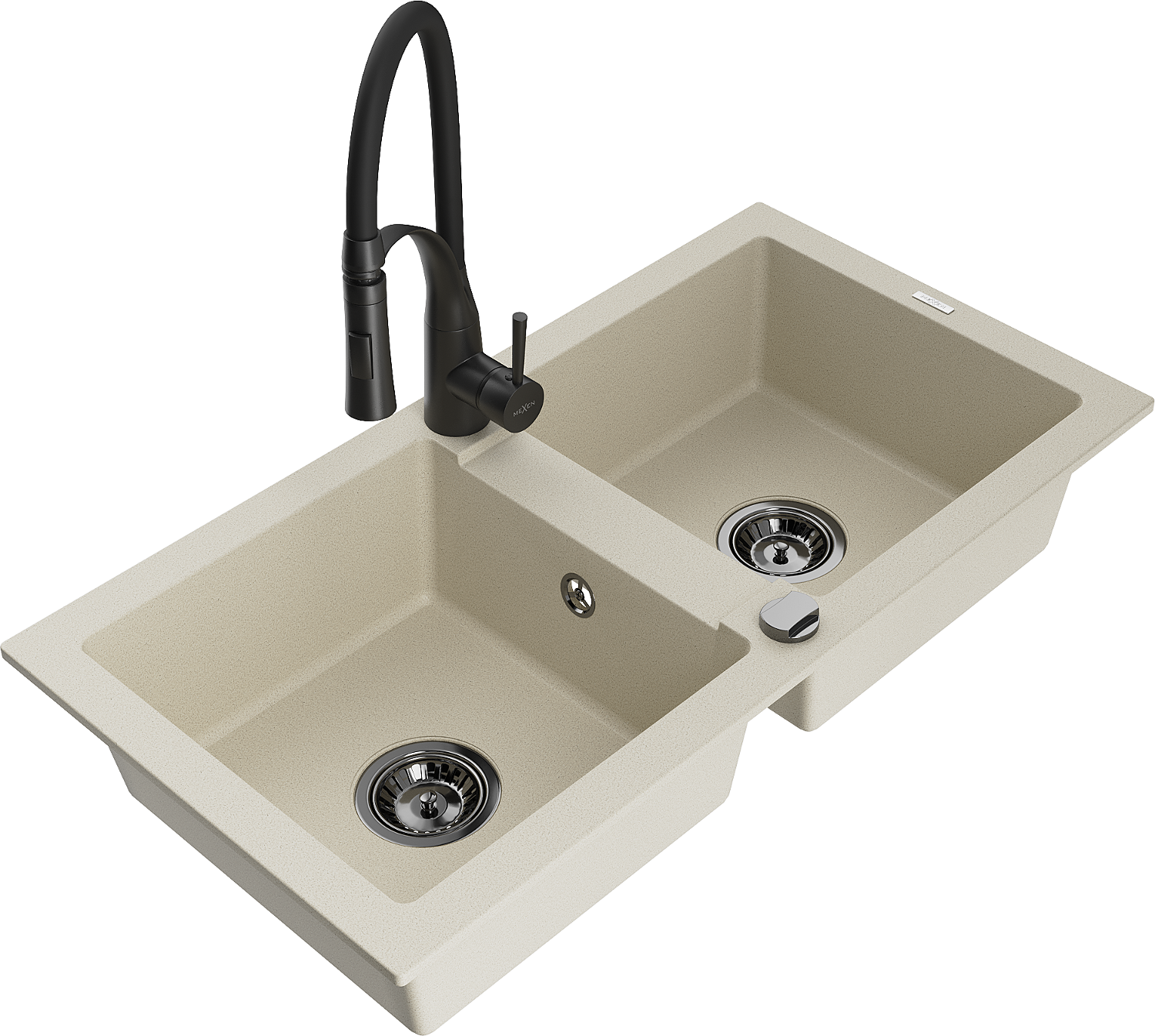 Mexen Mario granieten gootsteen 2-kamer met keukenmengkraan Aster, beige - 6504-69-73450-70-B