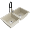 Het oppervlak van de gootsteen is bestand tegen vlekken en verkleuringen, waardoor het gemakkelijk schoon te houden is en zijn kleur behoudt gedurende een lange gebruiksperiode. Een esthetische en praktische aanvulling op elke keuken.