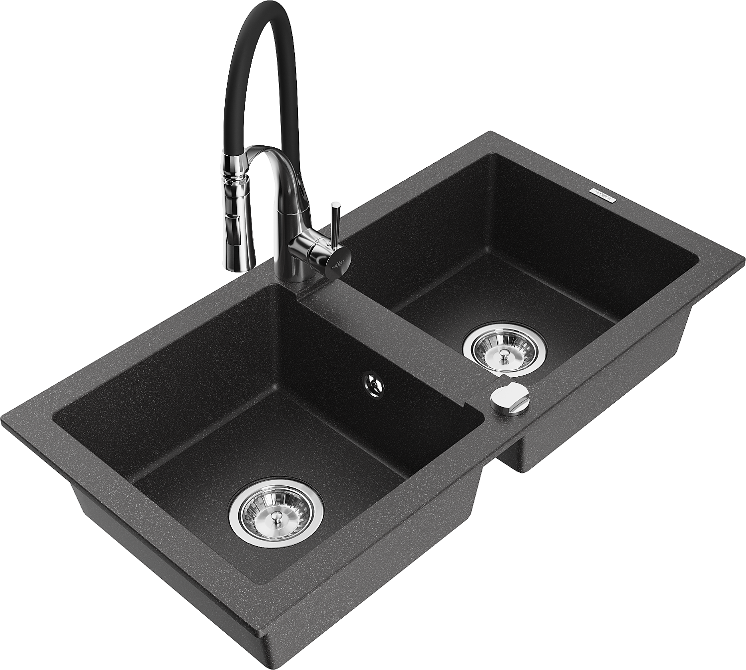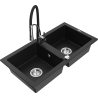 Mexen Mario granieten spoelbak 2-kamers met keukenmengkraan Aster, zwart gespikkeld - 6504-76-73450-07