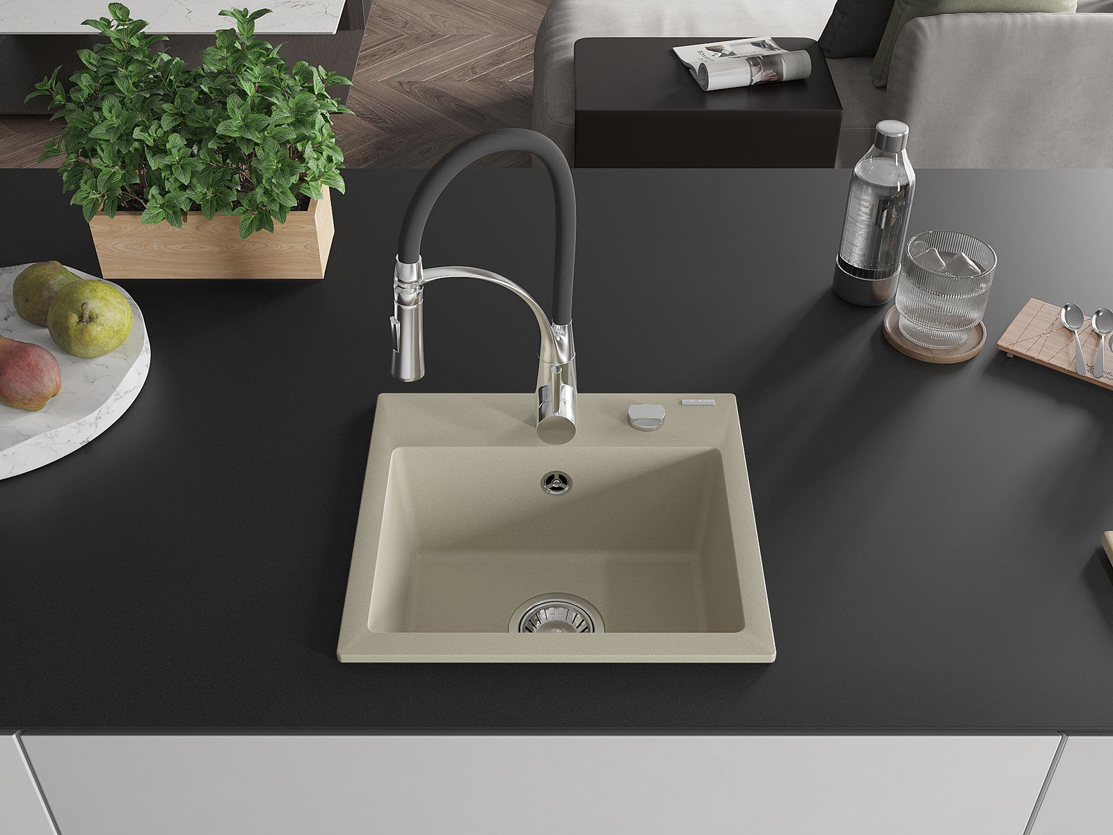 Mexen Milo granieten spoelbak 1-komorige met keukenmengkraan Aster, beige - 6505-69-73450-07