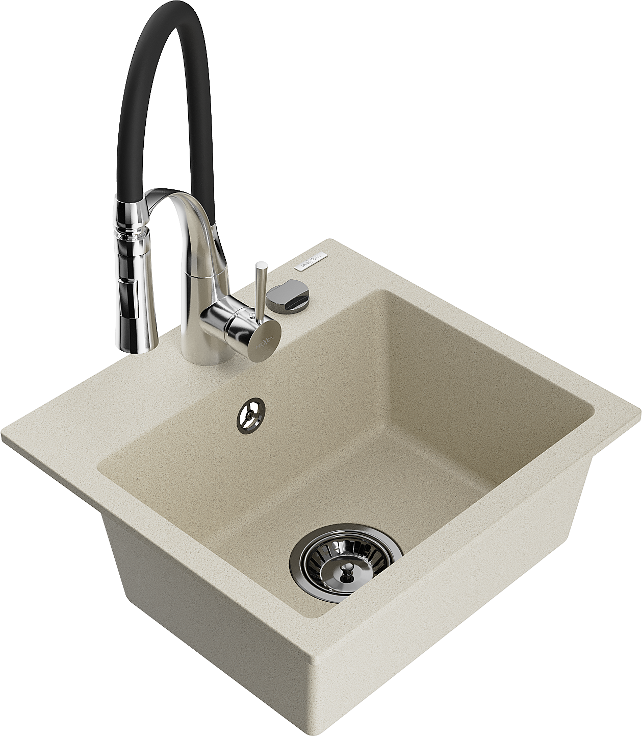 Mexen Milo granieten spoelbak 1-komerig met keukenmengkraan Aster, beige - 6505-69-73450-07-B