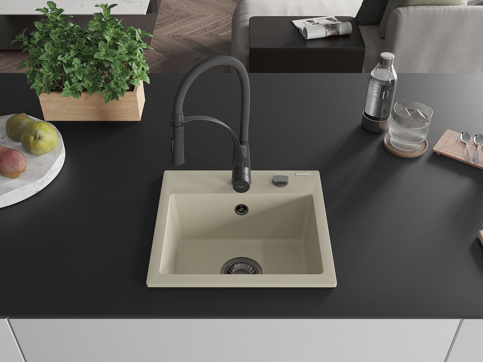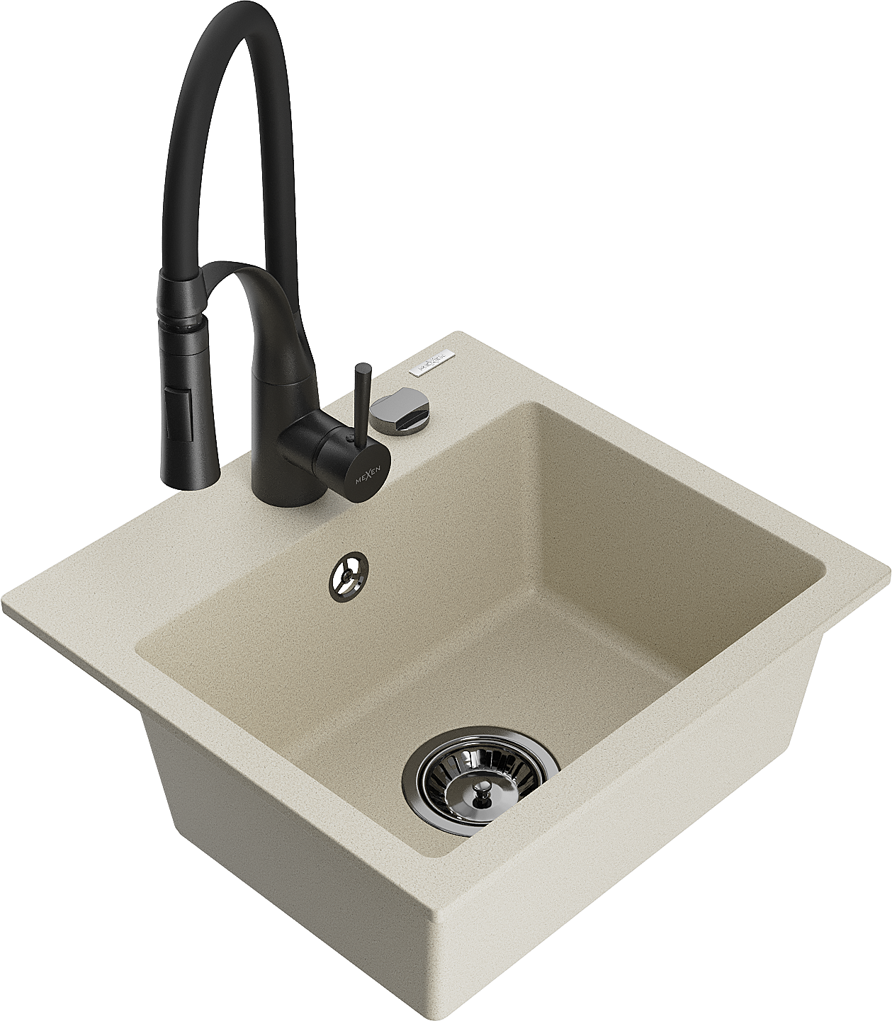 Mexen Milo granieten spoelbak met 1 bak met Aster keukenkraan, beige - 6505-69-73450-70-B