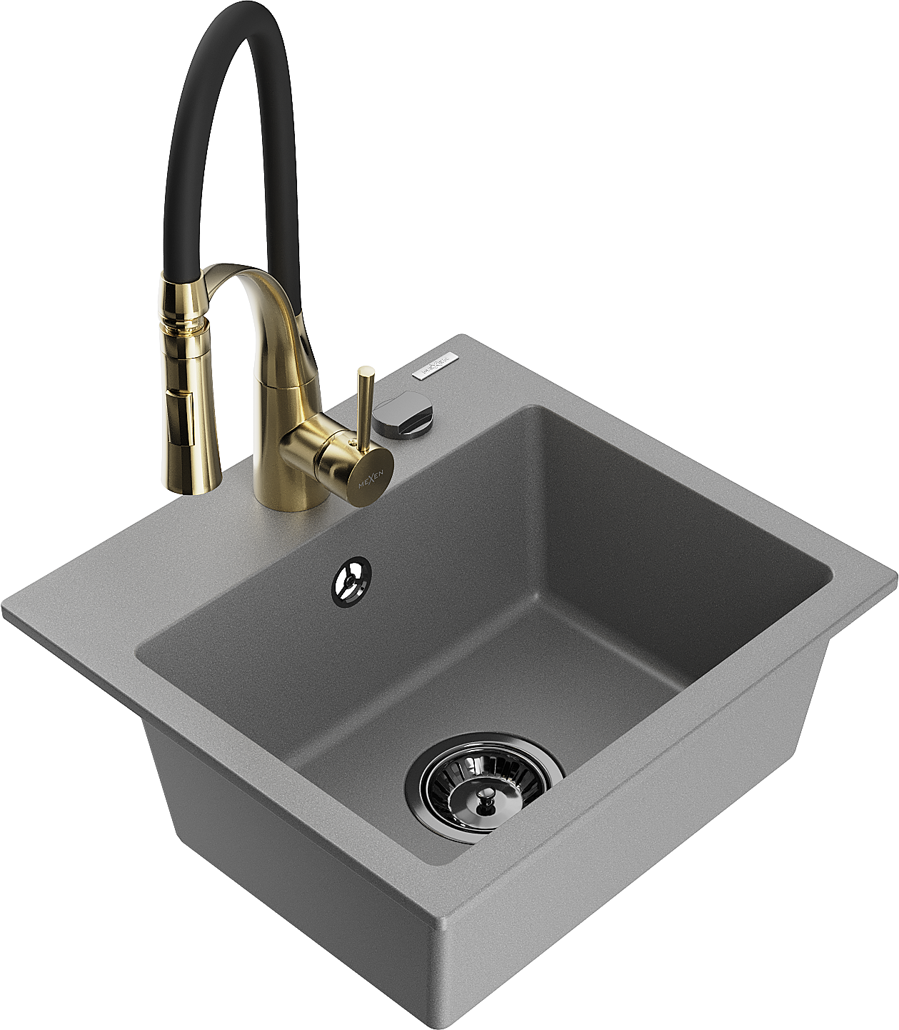 Mexen Milo granieten gootsteen 1-komor met keukenmengkraan Aster, grijs - 6505-71-73450-57-B