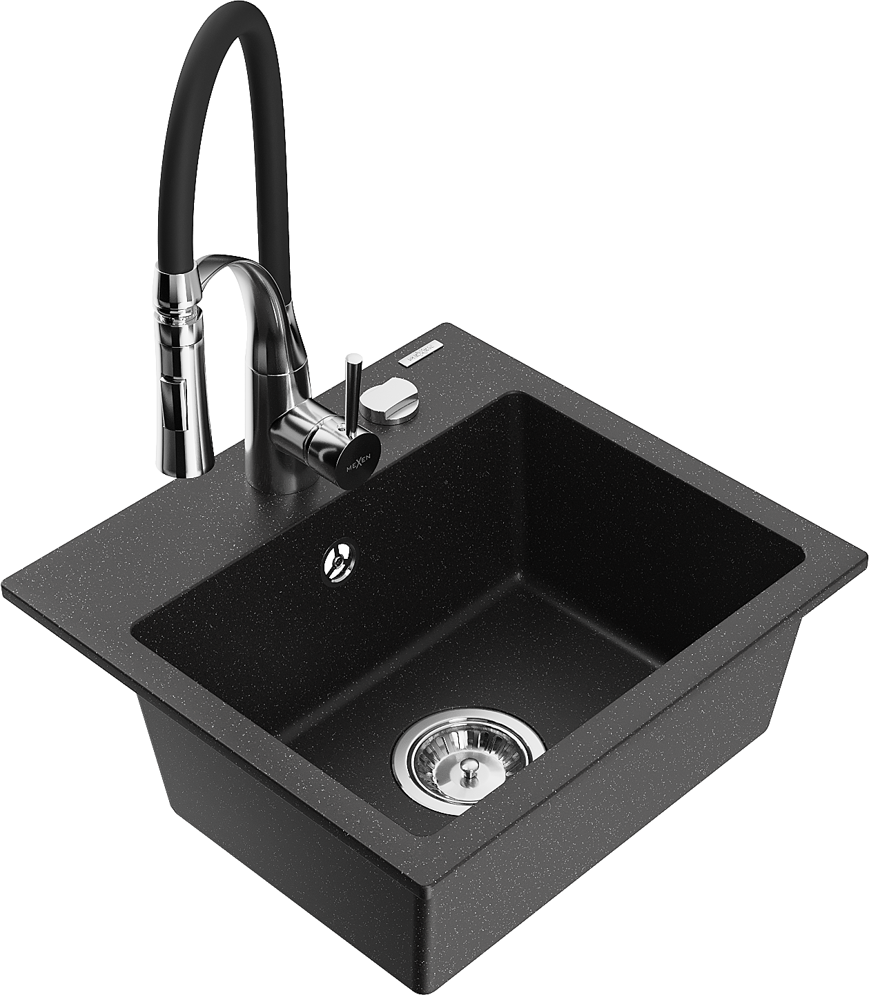 Mexen Milo granieten spoelbak 1-komor met keukenmengkraan Aster, zwart/zilver metallic - 6505-73-73450-07