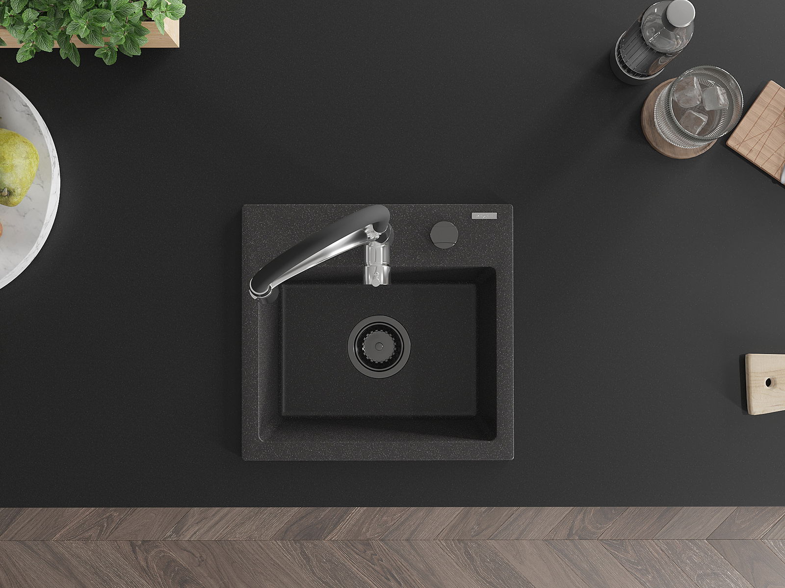 De gootsteen is gemaakt van hoogwaardig graniet. Het vormt een elegante en vooral praktische aanvulling op elke keuken, ongeacht de stijl ervan. De hoge kwaliteit en duurzaamheid van graniet garanderen jarenlang gebruik.