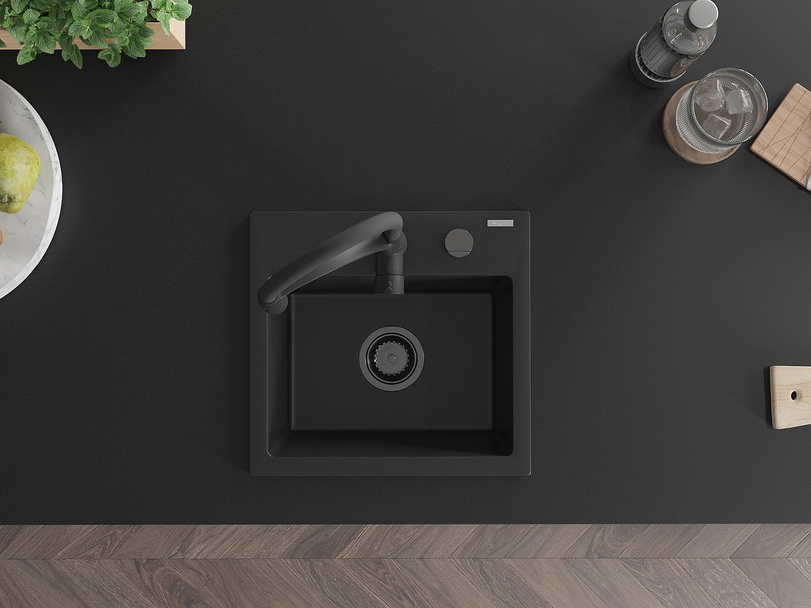 Mexen Milo granieten spoelbak met 1 bak en Aster keukenmengkraan, zwart - 6505-77-73450-70-B