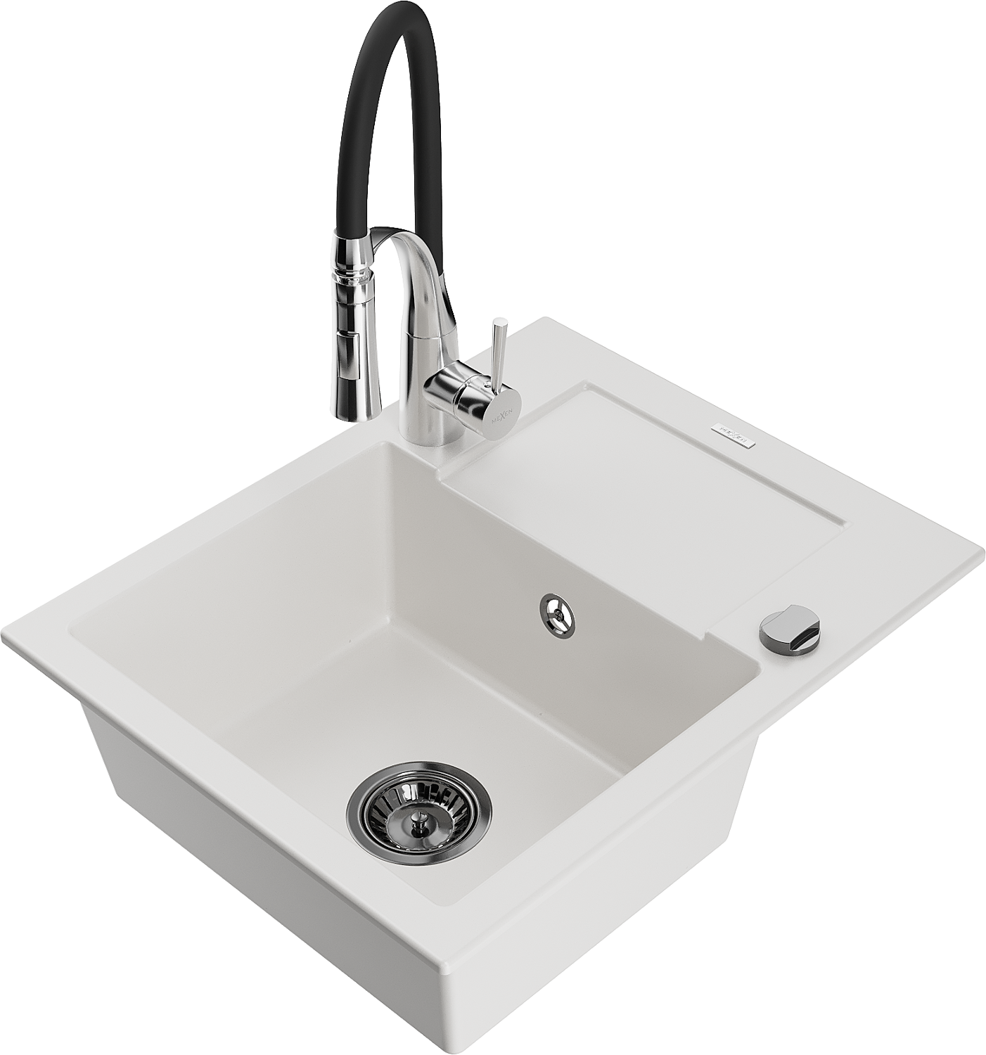 Mexen Enzo granieten spoelbak met 1 bak en druiprek en Astera keukenkraan, wit - 6506-20-73450-07-B