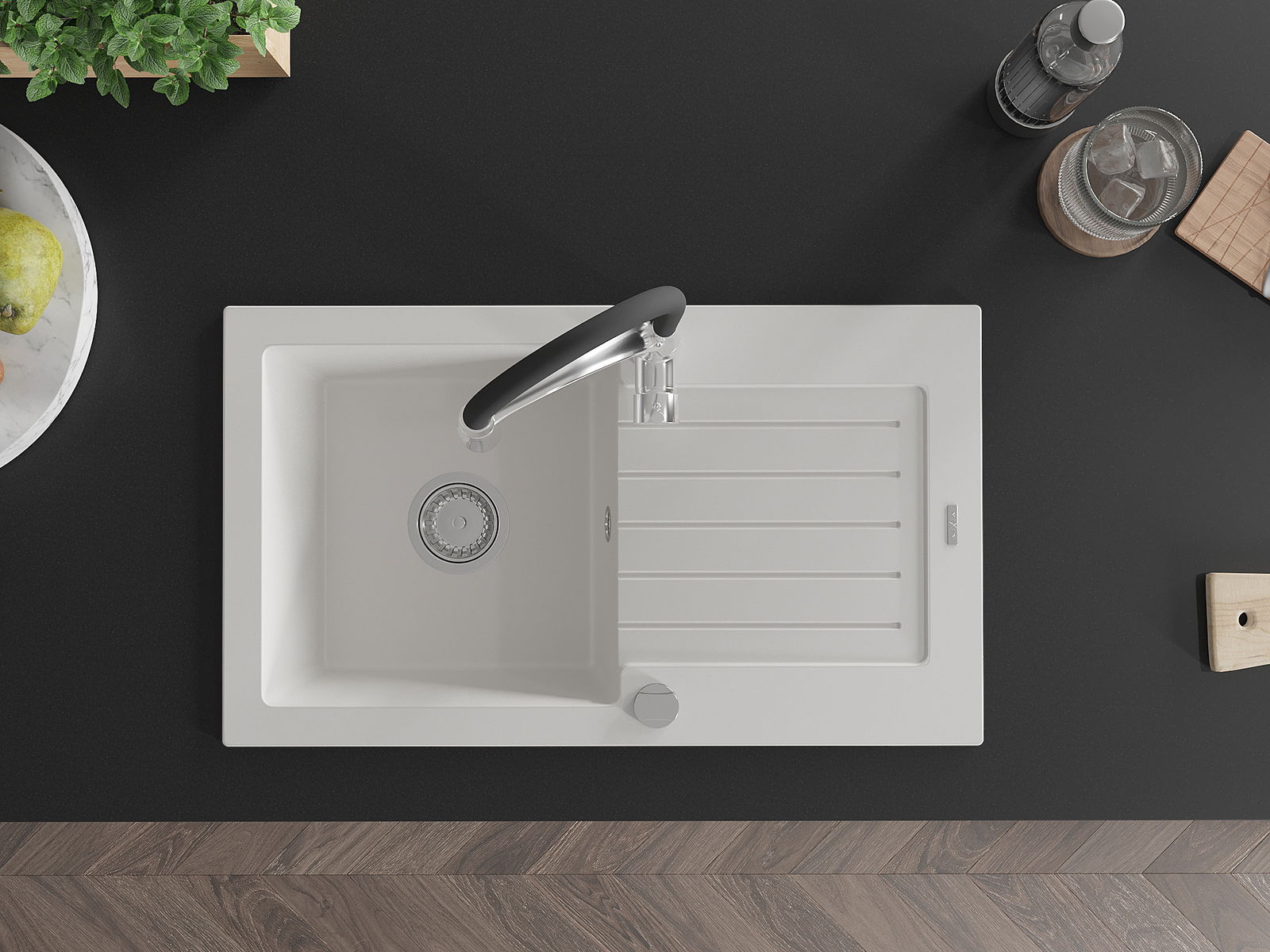 Mexen Pablo granieten gootsteen 1-baks met afdruiprek en keukenmengkraan Aster, wit - 6510-20-73450-07