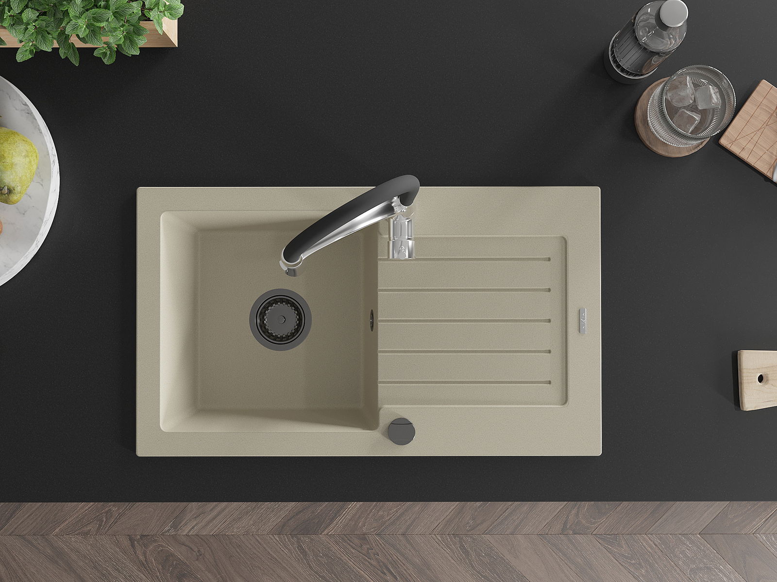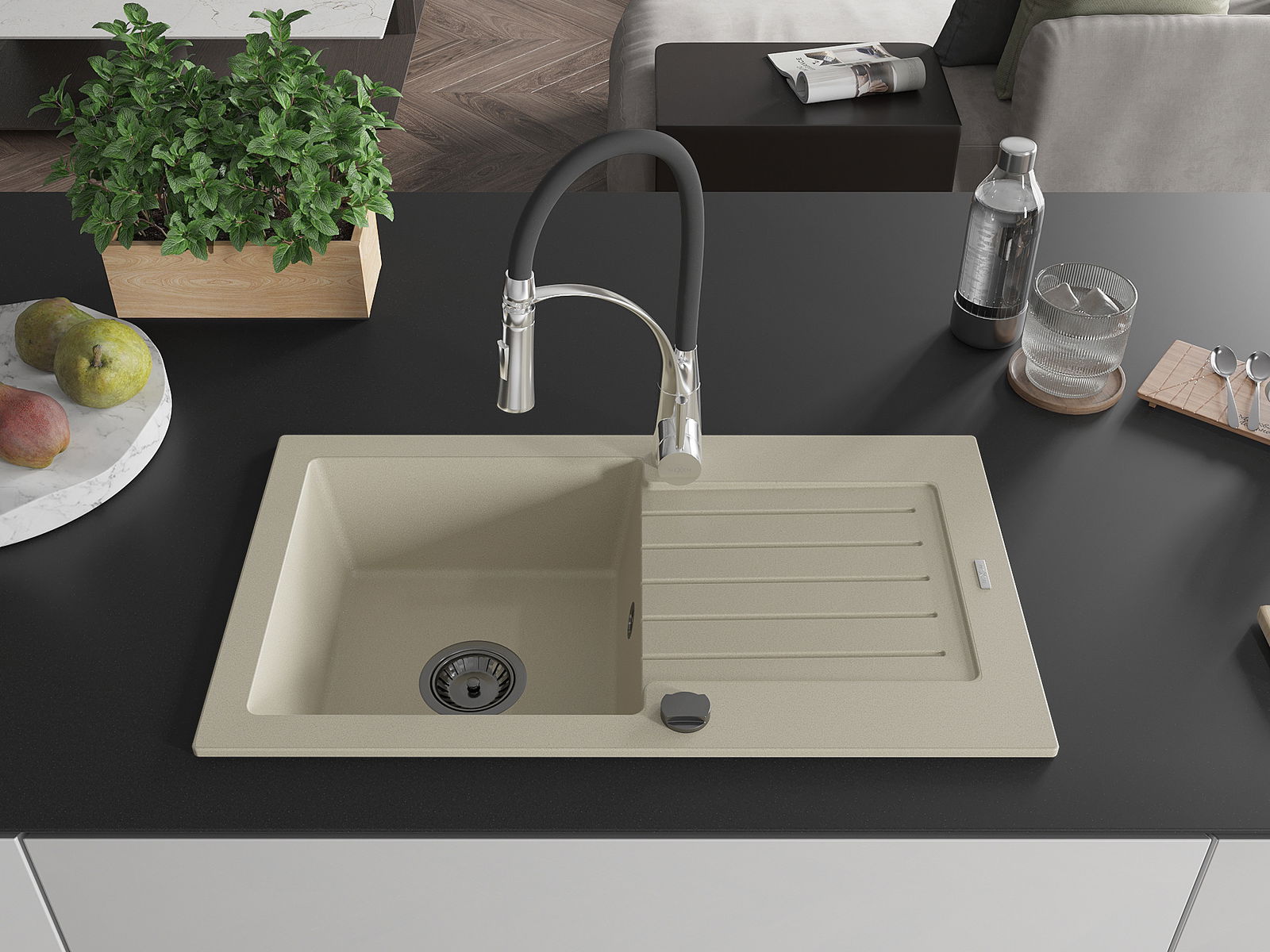 Mexen Pablo granieten spoelbak 1-komers met afdruipblad en keukenmengkraan Aster, beige - 6510-69-73450-07-B