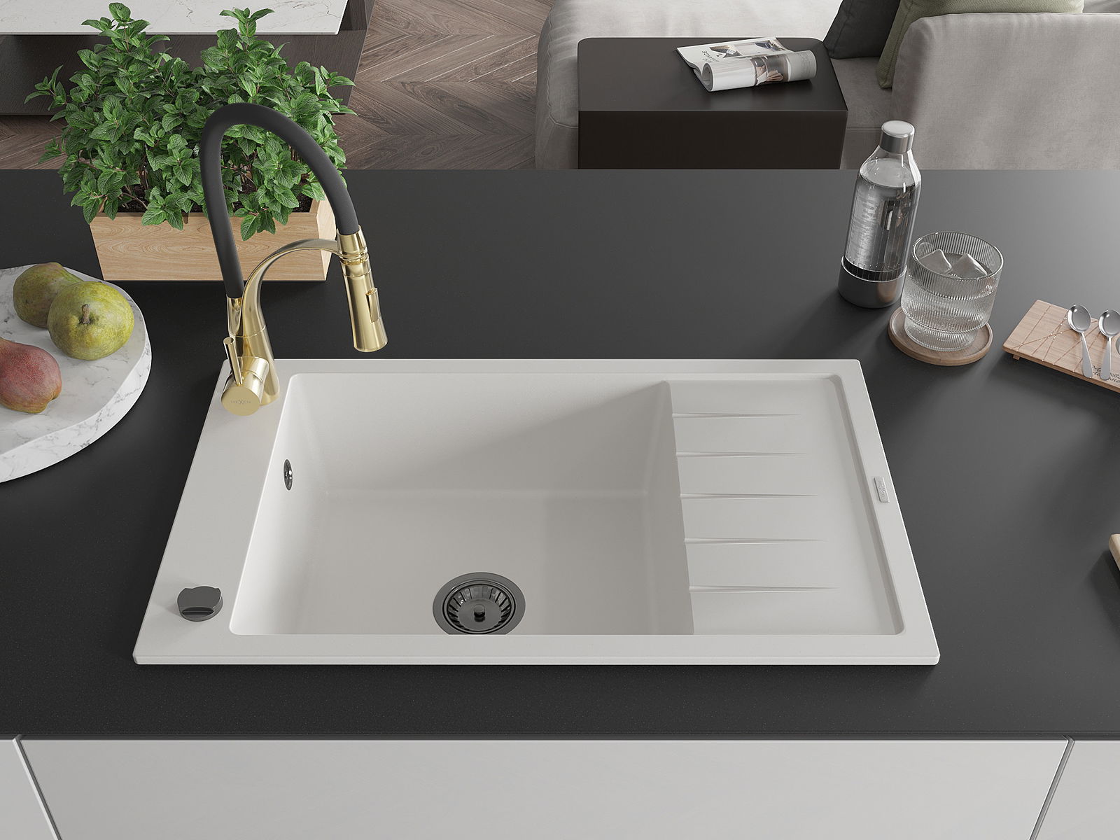 De gootsteen is gemaakt van hoogwaardig graniet. Het vormt een elegante en vooral praktische aanvulling op elke keuken, ongeacht de stijl. De hoge kwaliteit en duurzaamheid van graniet zorgen voor jarenlang gebruik.