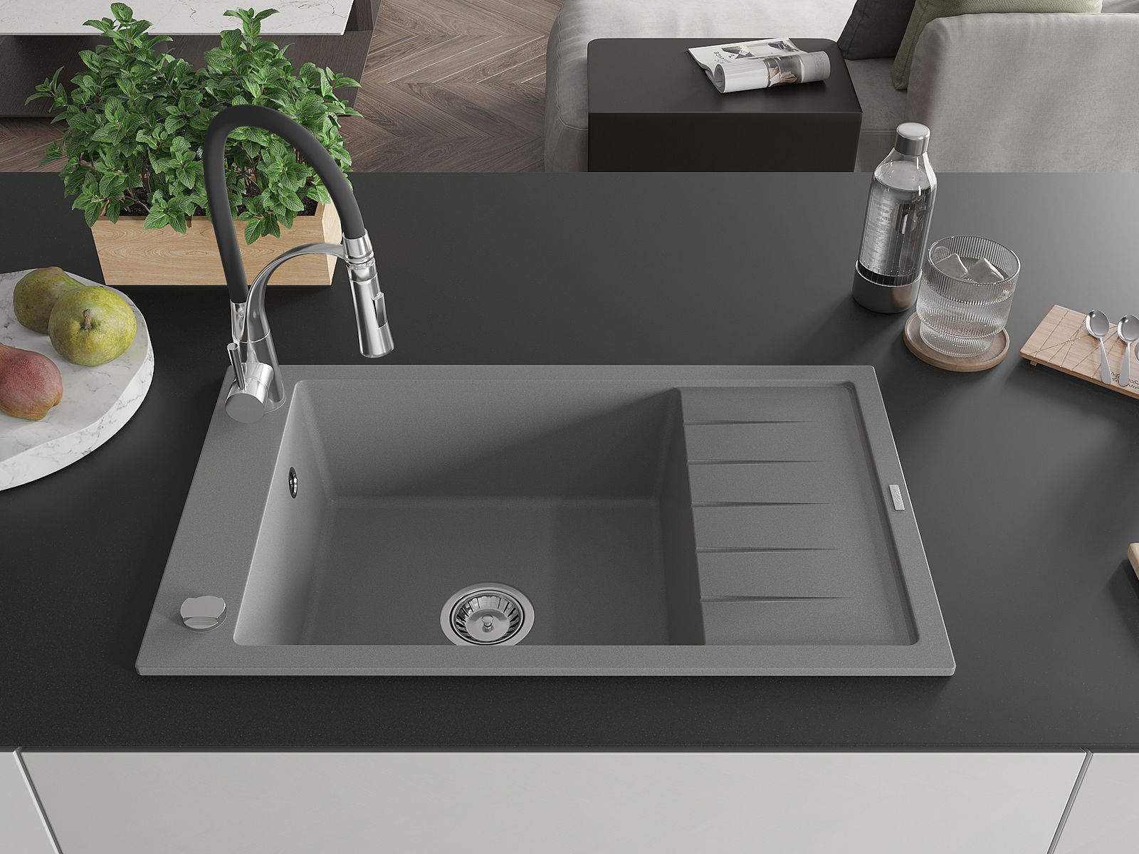 De gootsteen is gemaakt van hoogwaardig graniet. Het vormt een elegante en vooral praktische aanvulling op elke keuken, ongeacht de stijl. De hoge kwaliteit en duurzaamheid van graniet zorgen voor jarenlang gebruik.