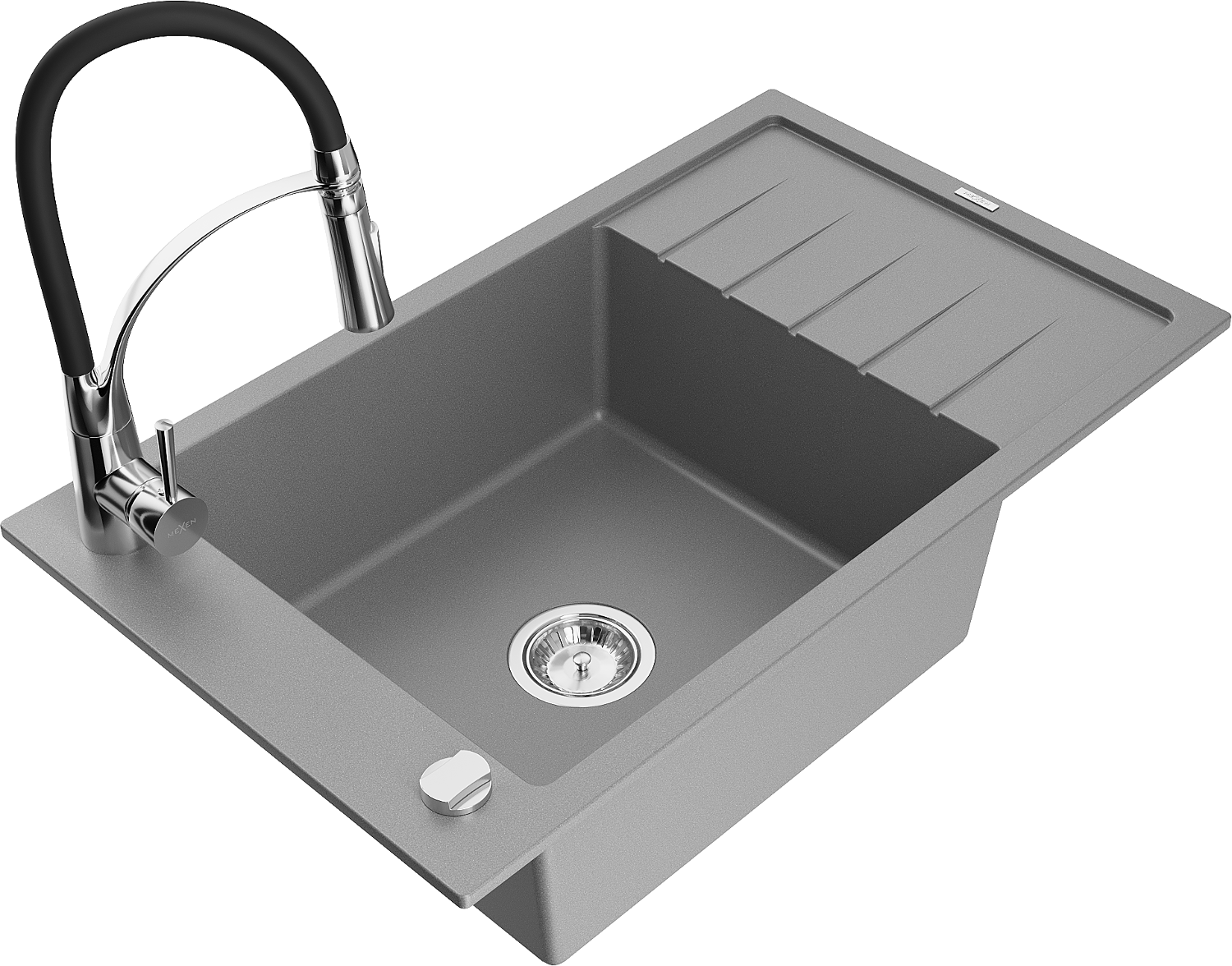 Mexen Elias granieten gootsteen met 1 bak en afdruiprek en keukenmengkraan Aster, grijs - 6511-71-73450-07